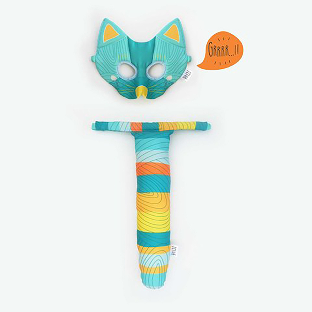 Incluye antifaz + colita de animal con cintura elastica y ajustable a disntitos tamaños. A partir de los 2 años.